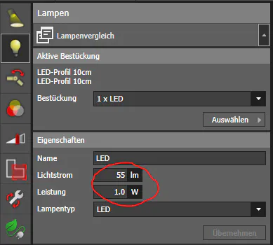 I can already adjust the luminous flux and power of a luminaire perfectly in DIALUX.