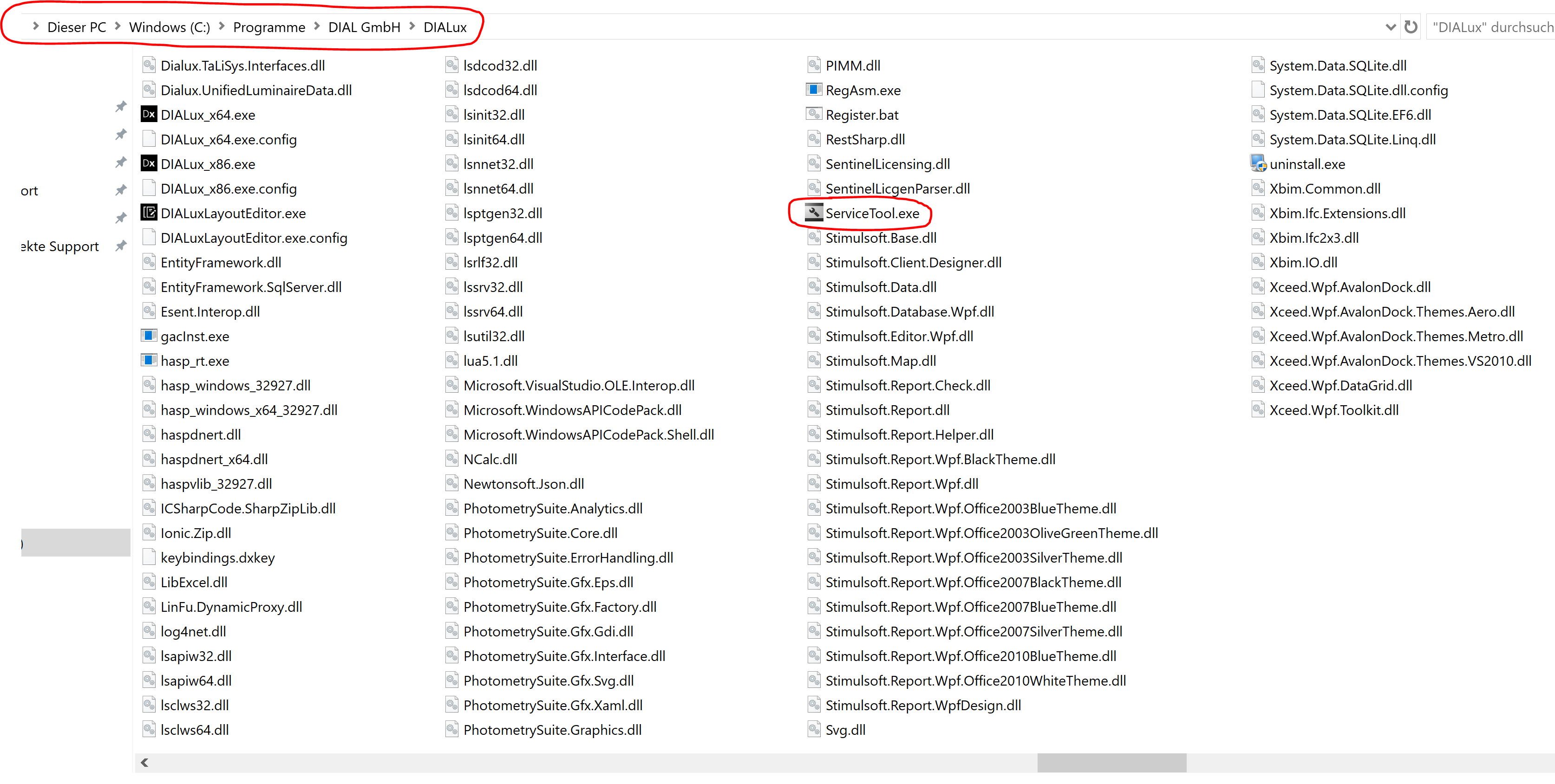To do this, please open the "Service Tool" in the DIAL GmbH folder and write us an email from this "Service Tool" with the instance ID (see screenshots 1 & 2 in the attachment).