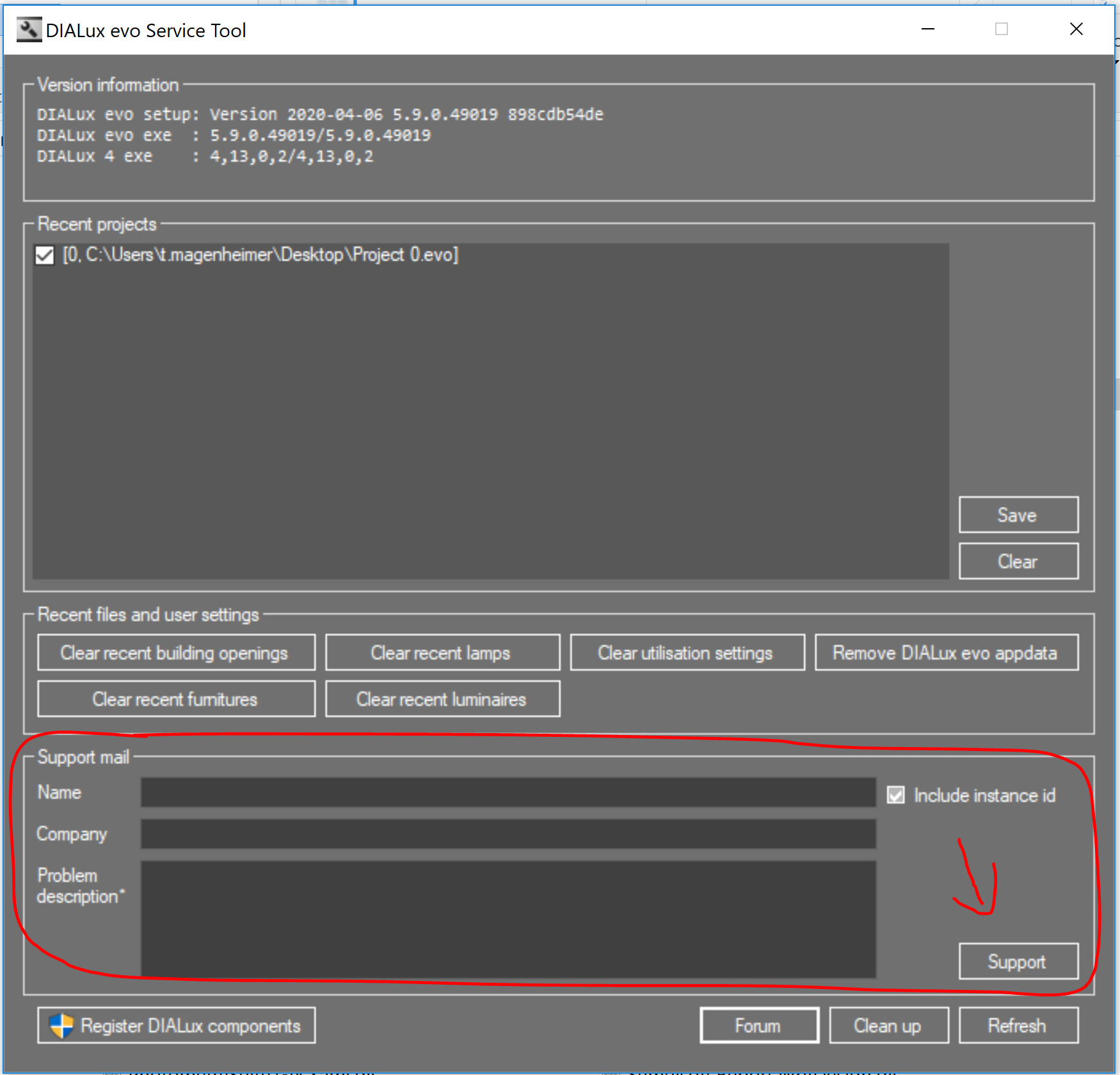 If the problem still occurs, we would like to ask you to send us all DIALux log files.