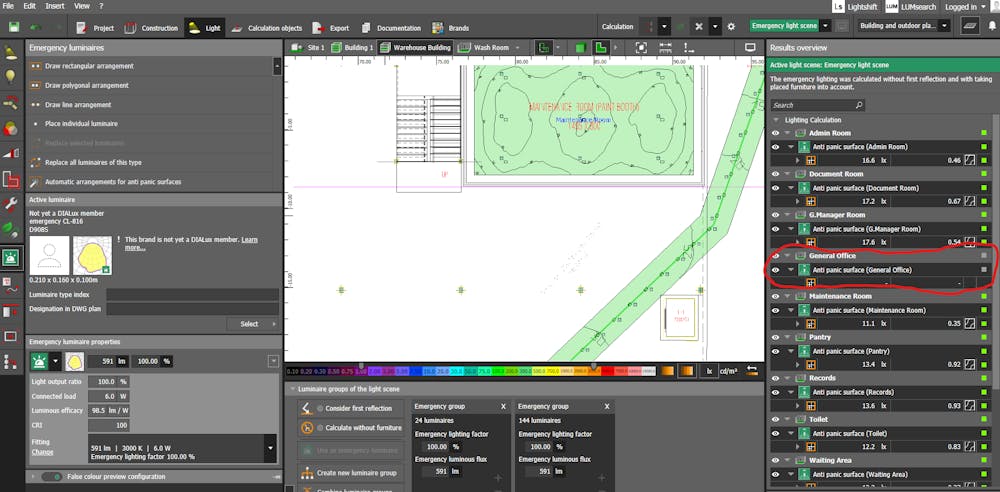 Emergency Lux calculation
