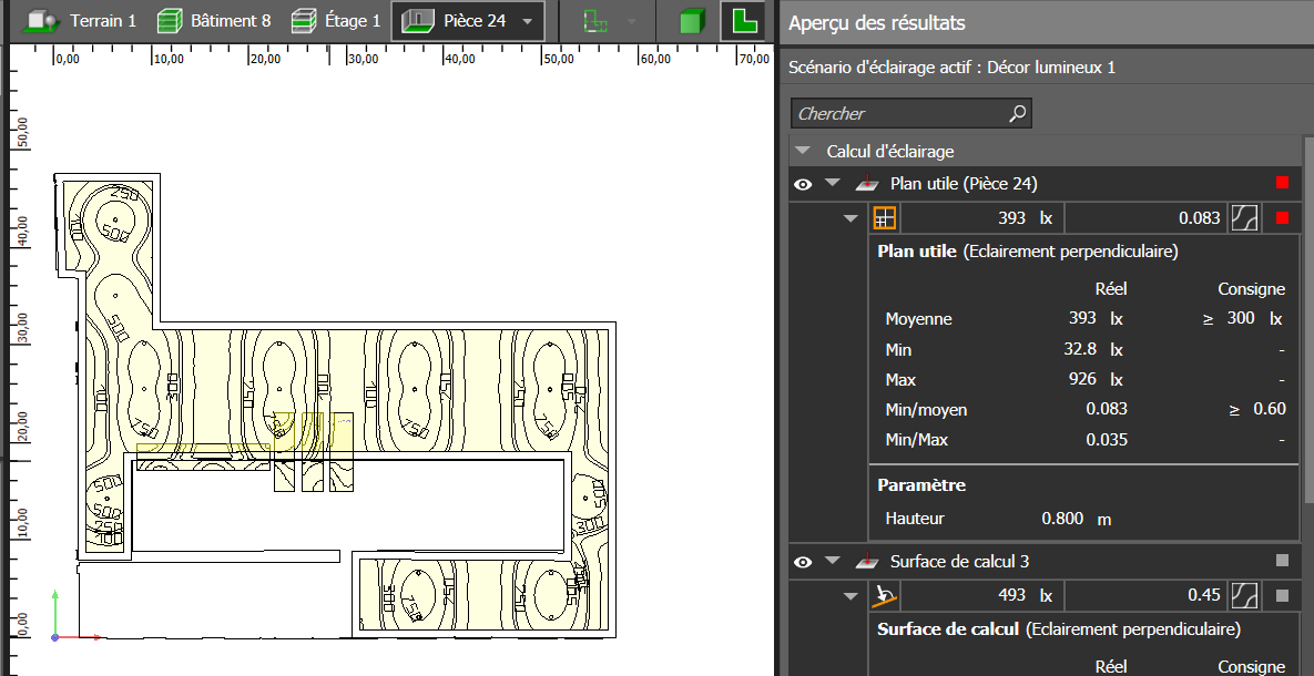 I have a problem of uniformity for my project, in fact it is a factory with a height of 9m, I chose 200W and 30000LM industrial fittings, the number of lux is respected but the uniformity is very low, how can I solve the problem of uniformity (see image below).