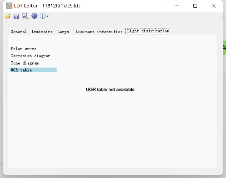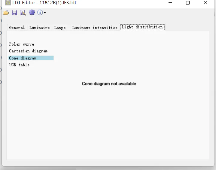 why use the LDT editor open the IES file,it doesn't have the DIAGRAM and UGR tabel?