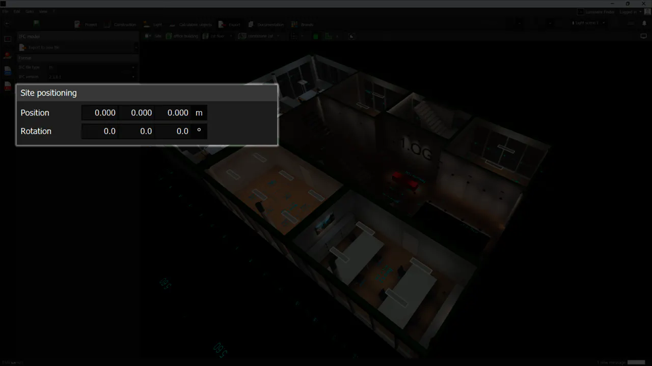 In real-world projects, different team members often work on lighting design and IFC models in parallel. With DIALux evo 13.2, you can now adjust the IFC insertion point and orientation during export. This ensures your lighting design aligns precisely with the IFC model. Your settings are saved directly in the project, you only need to set them once.